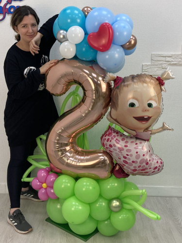 Композиция Девочка на полянке. Композицию можно использовать в качестве фотозоны или же оформить комнату ребенка для создания праздничной атмосферы. На шар можно добавить любую надпись. Цифру также можно выбрать любую.
