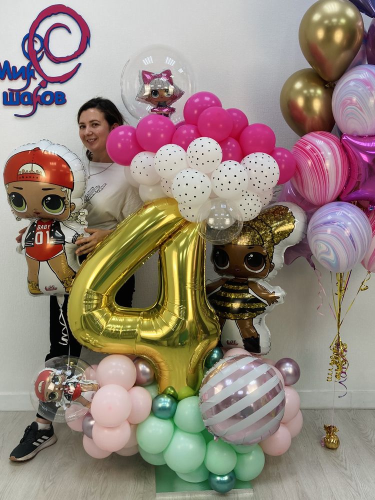 Вариант фольгированных шаров и цифра, подбираются согласно возрасту и предпочтениям ребенка. Цветовое решение может быть любое.
