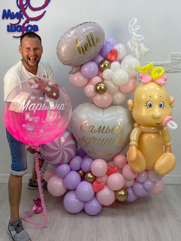 Гелиевые шары в стоимость не входят, их можно добавить при согласовании заказа с менеджером. (большой шар с метрикой)