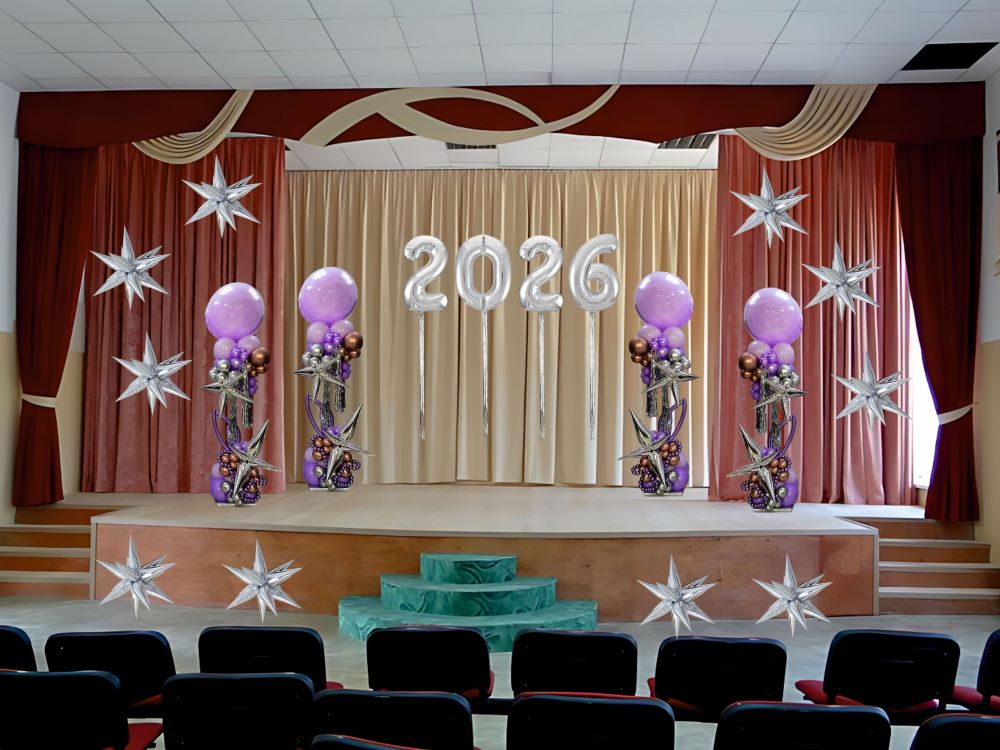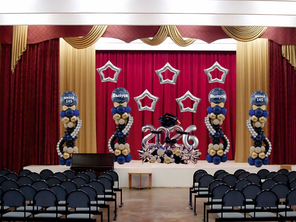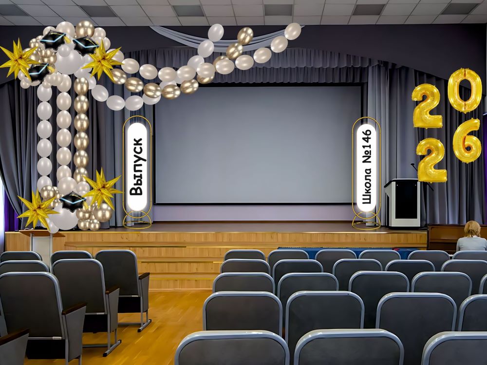 Второе — определить зоны декора: нужно оформить актовый зал, создать фотозону или украсить вход в школу.
